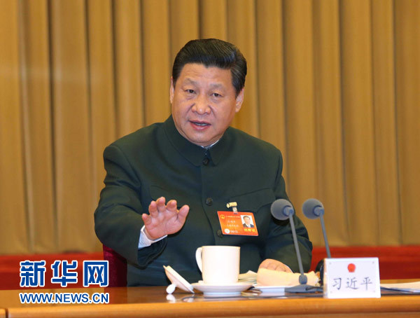 3月11日,中共中央總書(shū)記、國(guó)家主席、中央軍委主席習(xí)近平出席十二屆全國(guó)人大二次會(huì)議解放軍代表團(tuán)全體會(huì)議并發(fā)表重要講話。新華社記者李剛攝