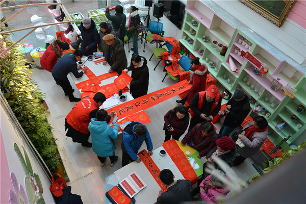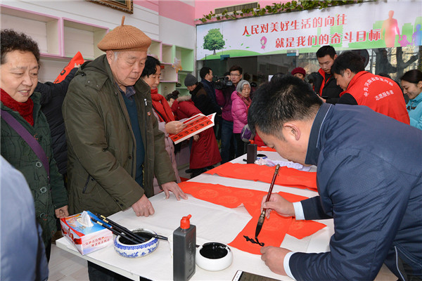 在“迎新春、送春聯(lián)”活動(dòng)現(xiàn)場(chǎng),書(shū)法家們揮毫潑墨,為廣大黨員群眾書(shū)寫(xiě)春聯(lián),吸引了多名書(shū)法愛(ài)好者現(xiàn)場(chǎng)求教;黨員群眾們拿著剛寫(xiě)好的還飄著墨香的春聯(lián),欣賞、贊嘆、感謝聲不絕于耳。