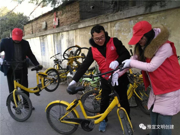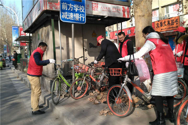志愿者們冒著寒風(fēng)和低溫,清理家屬院里違規(guī)停放小黃車(chē),并引導(dǎo)社區(qū)居民講文明、樹(shù)新風(fēng),養(yǎng)成良好的行為習(xí)慣。經(jīng)過(guò)一個(gè)多小時(shí)的勞動(dòng),雖然手都凍紅了,但看到近百輛擺放的整整齊齊的單車(chē)和井然有序的院子,大家都有滿(mǎn)滿(mǎn)的成就感,也體會(huì)到了奉獻(xiàn)的快樂(lè)。